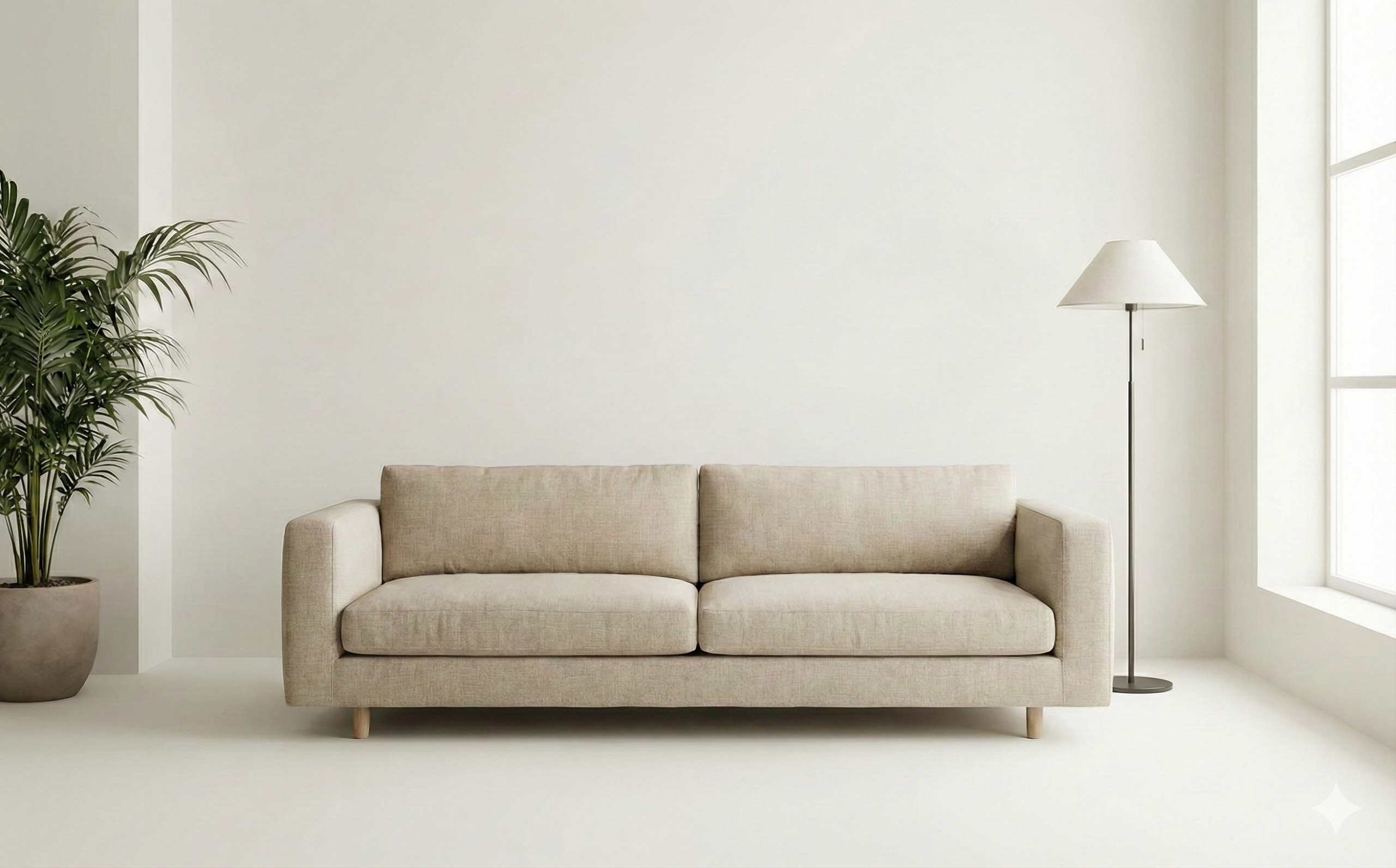 O sofá adiciona conforto e sofisticação ao ambiente. Ele convida o visitante a permanecer mais tempo no stand, tornando a experiência mais acolhedora e favorecendo interações mais próximas e estratégicas.